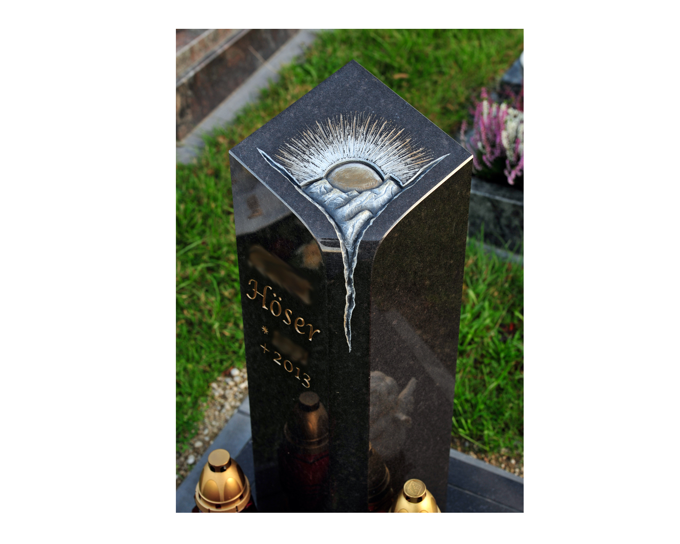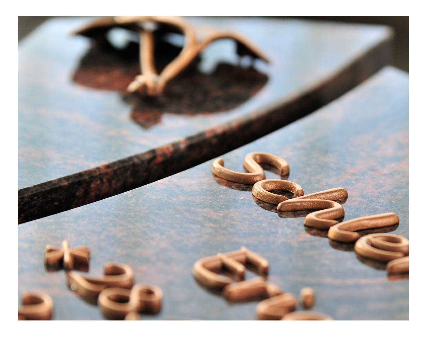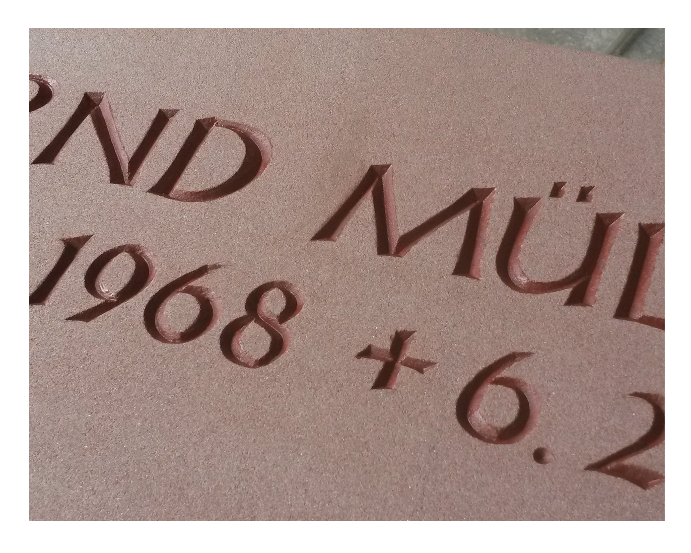 Schwerpunkte meiner Arbeit sind die Grabmal-, Schrift- und Ornamentgestaltung. Sei es moderne Formgebung mit glatter Oberflächen und simplen Blockschriften oder verschnörkelte Fraktur-Schriften auf klassischen Formen mit aufwendiger Bearbeitung, flach eingravierte florale Darstellungen oder vollplastische Ornamenten – jeder Stil hat seinen ganz besonderen Reiz und seine Faszination für mich.