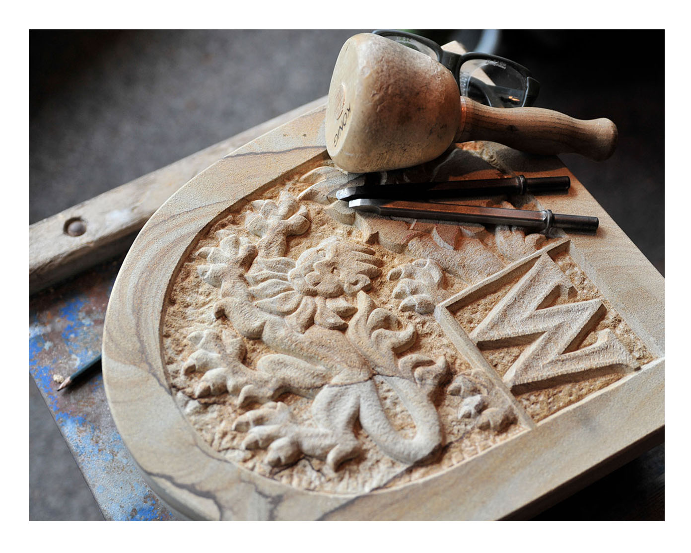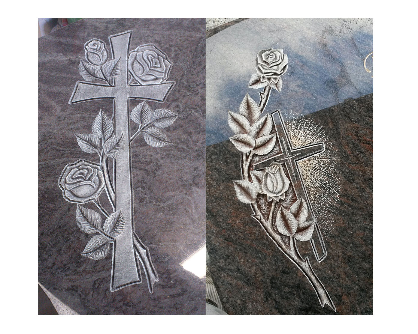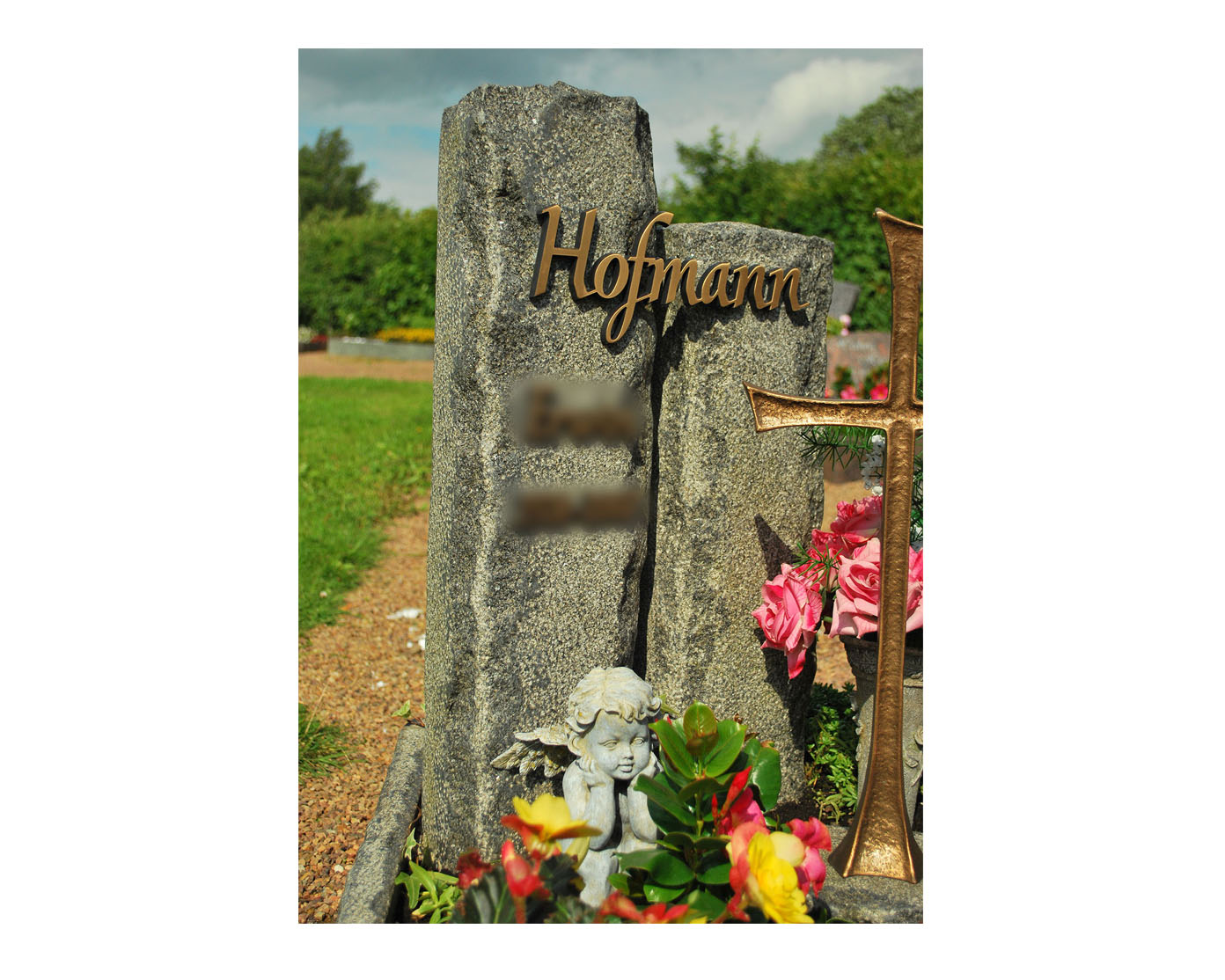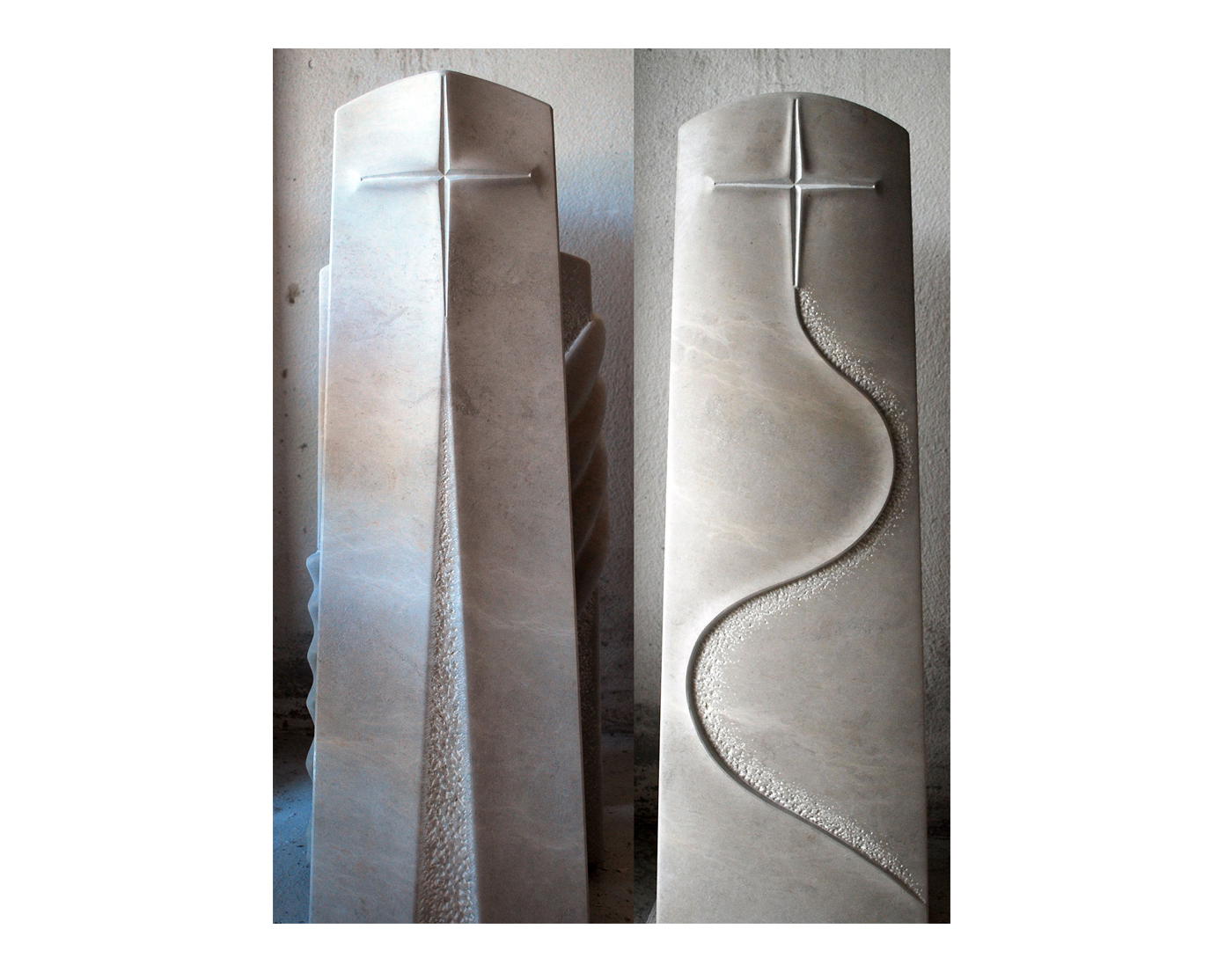 Schwerpunkte meiner Arbeit sind die Grabmal-, Schrift- und Ornamentgestaltung. Sei es moderne Formgebung mit glatter Oberflächen und simplen Blockschriften oder verschnörkelte Fraktur-Schriften auf klassischen Formen mit aufwendiger Bearbeitung, flach eingravierte florale Darstellungen oder vollplastische Ornamenten – jeder Stil hat seinen ganz besonderen Reiz und seine Faszination für mich.